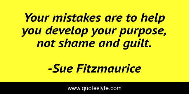 This page presents the quote "Your mistakes are to help you develop your purpose, not shame and guilt.". Author of this quote is Sue Fitzmaurice. This quote is about shame, mistakes, guilt, purpose, inspirational, enthusiasm,.