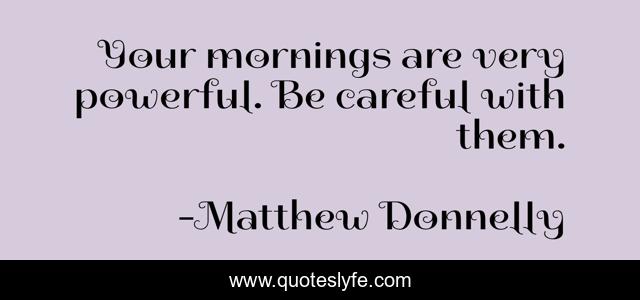 "Matthew Donnelly Quotes." Quoteslyfe.com, 2025. Sat. 06 Dec. 2025. <https://www.quoteslyfe.com/quote/Your-mornings-are-very-powerful-Be-careful-78399>.