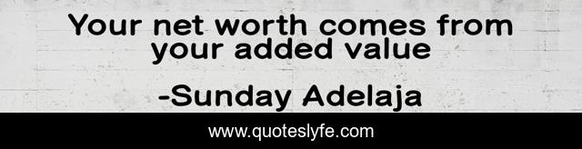 This page presents the quote "Your net worth comes from your added value". Author of this quote is Sunday Adelaja. This quote is about love, people, money, principles, selflessness, employment, worship, impact, living,.