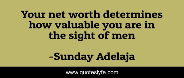 This page presents the quote "Your net worth determines how valuable you are in the sight of men". Author of this quote is Sunday Adelaja. This quote is about love, people, money, principles, selflessness, employment, worship, impact, living,.