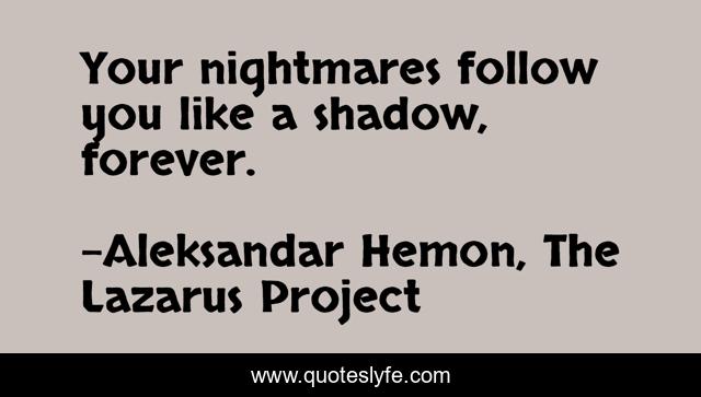 This page presents the quote "Your nightmares follow you like a shadow, forever.". Author of this quote is Aleksandar Hemon, The Lazarus Project. This quote is about nightmares, shadows, life,.