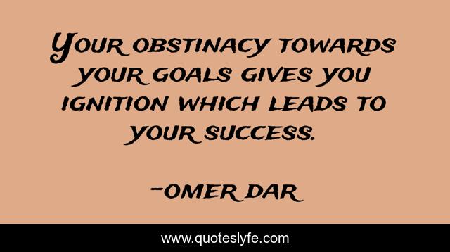 This page presents the quote "Your obstinacy towards your goals gives you ignition which leads to your success.". Author of this quote is omer dar. This quote is about confidence, success, positive, motivational, obstinacy, optimistic, goals,.