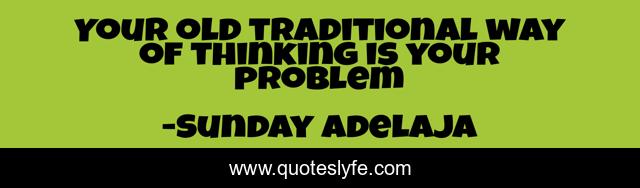 This page presents the quote "Your old traditional way of thinking is your problem". Author of this quote is Sunday Adelaja. This quote is about prosperity, old, wealth, thinking, money, riches, traditional, way, golden-rule,.