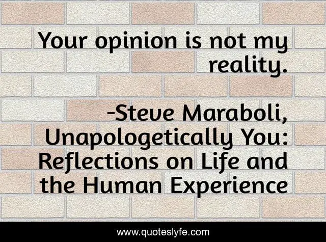 "Steve Maraboli, Unapologetically You: Reflections on Life and the Human Experience Quotes." Quoteslyfe.com, 2025. Fri. 05 Dec. 2025. <https://www.quoteslyfe.com/quote/Your-opinion-is-not-my-reality-4664>.