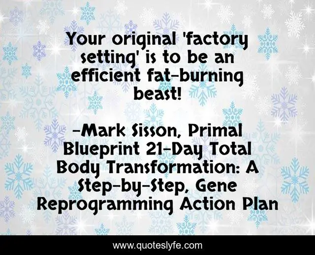 "Mark Sisson, Primal Blueprint 21-Day Total Body Transformation: A Step-by-Step, Gene Reprogramming Action Plan Quotes." Quoteslyfe.com, 2025. Fri. 05 Dec. 2025. <https://www.quoteslyfe.com/quote/Your-original-factory-setting-is-to-be-168080>.