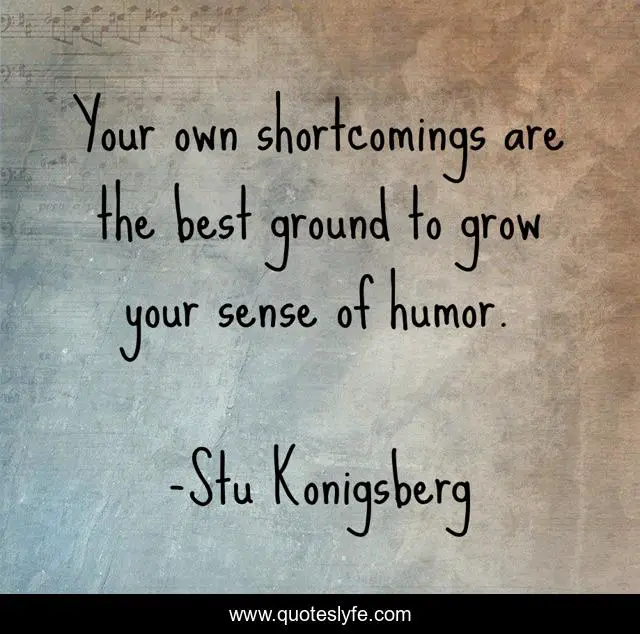 This page presents the quote "Your own shortcomings are the best ground to grow your sense of humor.". Author of this quote is Stu Konigsberg. This quote is about humor, knowledge, life-motivational-inspirational, humorous, human-nature, life-changing, humans, knowledge-of-self, knowledge-wisdom,.