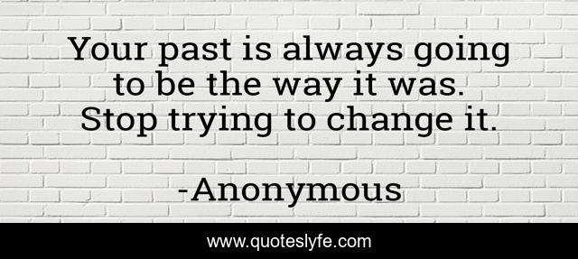This page presents the quote "Your past is always going to be the way it was. Stop trying to change it.". Author of this quote is Anonymous. .