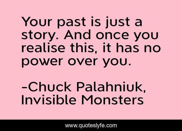 This page presents the quote "Your past is just a story. And once you realise this, it has no power over you.". Author of this quote is Chuck Palahniuk, Invisible Monsters. This quote is about past, past-and-future, invisible-monsters, chuck-palahniuk,.
