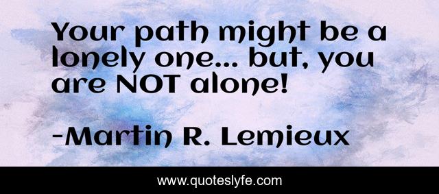 This page presents the quote "Your path might be a lonely one... but, you are NOT alone!". Author of this quote is Martin R. Lemieux. This quote is about anxiety, pain, joy, depression, alone, happiness,.