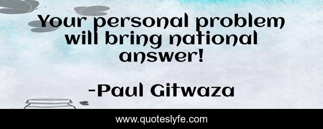 This page presents the quote "Your personal problem will bring national answer!". Author of this quote is Paul Gitwaza. This quote is about inspiration, problems, answers, national-security, life-and-living, personality,.