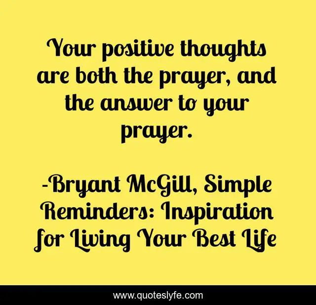 "Bryant McGill, Simple Reminders: Inspiration for Living Your Best Life Quotes." Quoteslyfe.com, 2025. Tue. 09 Dec. 2025. <https://www.quoteslyfe.com/quote/Your-positive-thoughts-are-both-the-prayer-115190>.