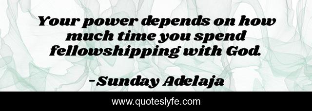 This page presents the quote "Your power depends on how much time you spend fellowshipping with God.". Author of this quote is Sunday Adelaja. This quote is about fellowship, power, prayer,.