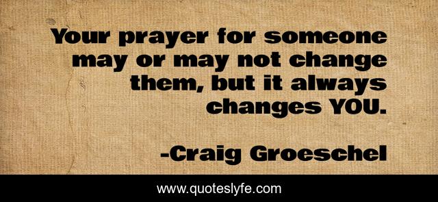 This page presents the quote "Your prayer for someone may or may not change them, but it always changes YOU.". Author of this quote is Craig Groeschel. This quote is about god, prayer,.
