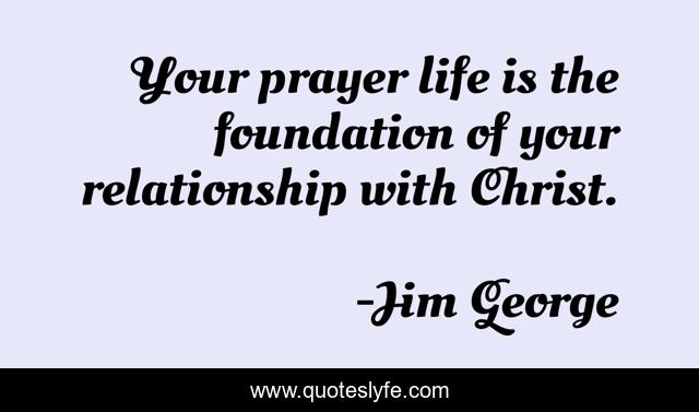 This page presents the quote "Your prayer life is the foundation of your relationship with Christ.". Author of this quote is Jim George. This quote is about foundation, jim-george, christ, relationship, christianity, prayer,.