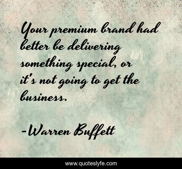 "Warren Buffett Quotes." Quoteslyfe.com, 2025. Sat. 06 Dec. 2025. <https://www.quoteslyfe.com/quote/Your-premium-brand-had-better-be-delivering-281479>.