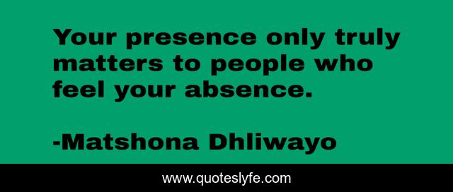 "Matshona Dhliwayo Quotes." Quoteslyfe.com, 2025. Sat. 06 Dec. 2025. <https://www.quoteslyfe.com/quote/Your-presence-only-truly-matters-to-people-49285>.