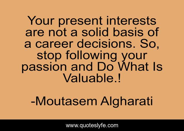Your present interests are not a solid basis of a career decisions. So, stop following your passion and Do What Is Valuable.!