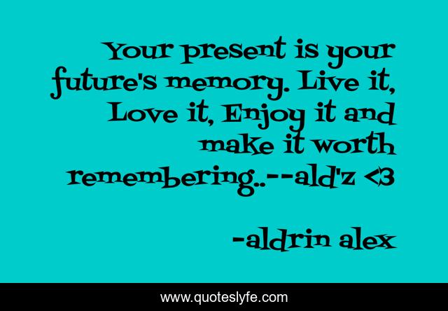 This page presents the quote "Your present is your future's memory. Live it, Love it, Enjoy it and make it worth remembering..--ald'z <3". Author of this quote is aldrin alex. .