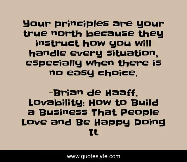 "Brian de Haaff, Lovability: How to Build a Business That People Love and Be Happy Doing It Quotes." Quoteslyfe.com, 2025. Fri. 05 Dec. 2025. <https://www.quoteslyfe.com/quote/Your-principles-are-your-true-north-because-29390>.