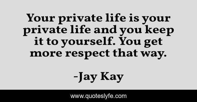 This page presents the quote "Your private life is your private life and you keep it to yourself. You get more respect that way.". Author of this quote is Jay Kay. This quote is about life, yourself,.