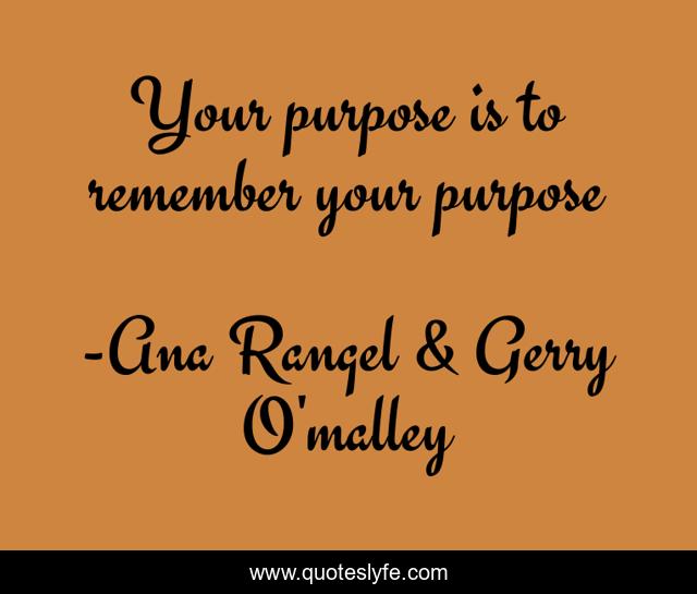 "Ana Rangel & Gerry O'malley Quotes." Quoteslyfe.com, 2025. Sat. 06 Dec. 2025. <https://www.quoteslyfe.com/quote/Your-purpose-is-to-remember-your-purpose-46358>.
