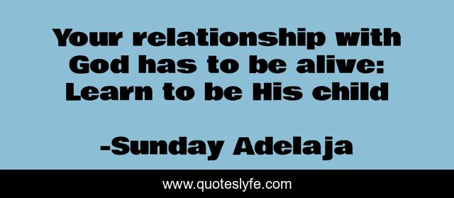 This page presents the quote "Your relationship with God has to be alive: Learn to be His child". Author of this quote is Sunday Adelaja. This quote is about relationship, prayer,.