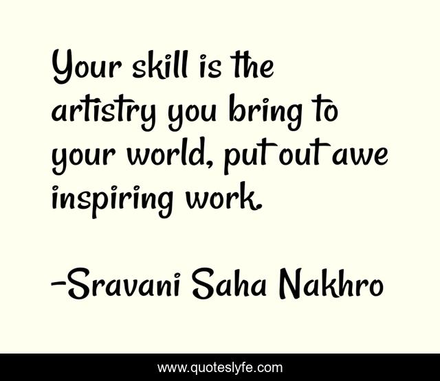 This page presents the quote "Your skill is the artistry you bring to your world, put out awe inspiring work.". Author of this quote is Sravani Saha Nakhro. .