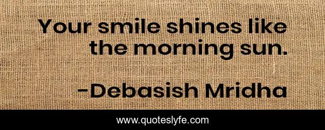 "Debasish Mridha Quotes." Quoteslyfe.com, 2025. Sat. 06 Dec. 2025. <https://www.quoteslyfe.com/quote/Your-smile-shines-like-the-morning-sun-74907>.