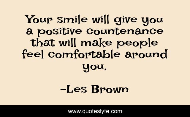 This page presents the quote "Your smile will give you a positive countenance that will make people feel comfortable around you.". Author of this quote is Les Brown. This quote is about smile, happiness, people,.