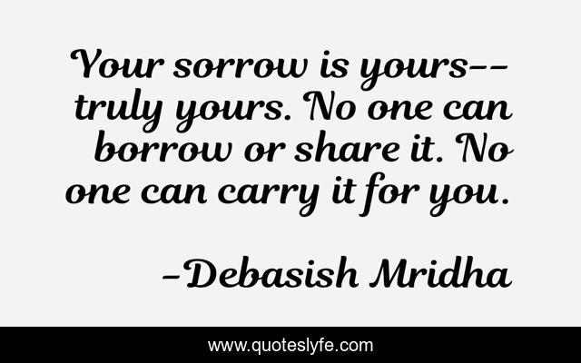 "Debasish Mridha Quotes." Quoteslyfe.com, 2025. Fri. 05 Dec. 2025. <https://www.quoteslyfe.com/quote/Your-sorrow-is-yours-truly-yours-No-135943>.