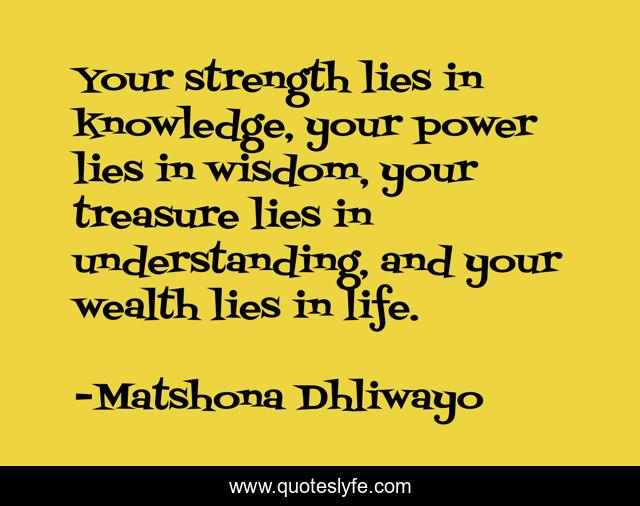 "Matshona Dhliwayo Quotes." Quoteslyfe.com, 2025. Tue. 09 Dec. 2025. <https://www.quoteslyfe.com/quote/Your-strength-lies-in-knowledge-your-power-58152>.