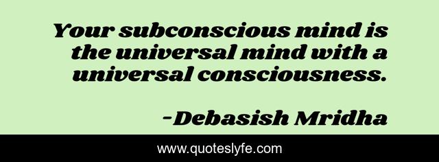 This page presents the quote "Your subconscious mind is the universal mind with a universal consciousness.". Author of this quote is Debasish Mridha. This quote is about universal-consciousness, philosophy, debasish-mridha, subconscious, quotes, inspirational, enthusiasm, universal-mind, debasish-mridha-m-d,.