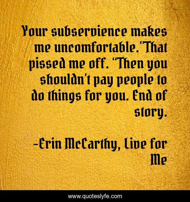 "Erin McCarthy, Live for Me Quotes." Quoteslyfe.com, 2025. Fri. 05 Dec. 2025. <https://www.quoteslyfe.com/quote/Your-subservience-makes-me-uncomfortable-That-pissed-161535>.