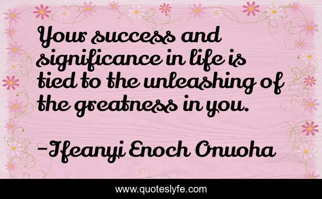 "Ifeanyi Enoch Onuoha Quotes." Quoteslyfe.com, 2025. Mon. 08 Dec. 2025. <https://www.quoteslyfe.com/quote/Your-success-and-significance-in-life-is-90526>.