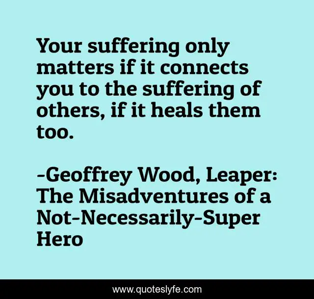"Geoffrey Wood, Leaper: The Misadventures of a Not-Necessarily-Super Hero Quotes." Quoteslyfe.com, 2025. Fri. 05 Dec. 2025. <https://www.quoteslyfe.com/quote/Your-suffering-only-matters-if-it-connects-143786>.