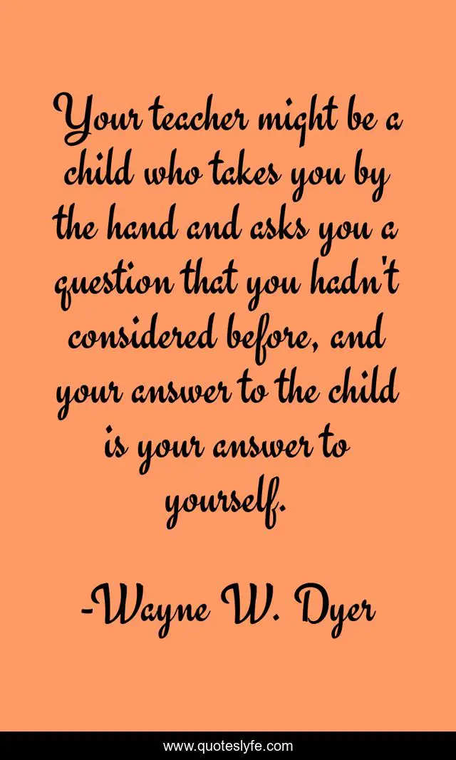 This page presents the quote "Your teacher might be a child who takes you by the hand and asks you a question that you hadn't considered before, and your answer to the child is your answer to yourself.". Author of this quote is Wayne W. Dyer. .