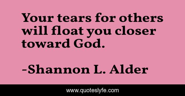 This page presents the quote "Your tears for others will float you closer toward God.". Author of this quote is Shannon L. Alder. This quote is about kindness, empathy, love, compassion, big-heart, understanding, feelings, tenderness, tears,.