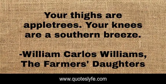"William Carlos Williams, The Farmers' Daughters Quotes." Quoteslyfe.com, 2025. Sun. 07 Dec. 2025. <https://www.quoteslyfe.com/quote/Your-thighs-are-appletrees-Your-knees-are-24435>.