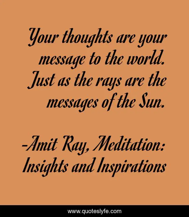 "Amit Ray, Meditation: Insights and Inspirations Quotes." Quoteslyfe.com, 2025. Fri. 05 Dec. 2025. <https://www.quoteslyfe.com/quote/Your-thoughts-are-your-message-to-the-73049>.