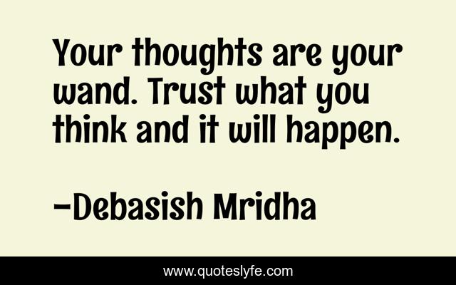 This page presents the quote "Your thoughts are your wand. Trust what you think and it will happen.". Author of this quote is Debasish Mridha. This quote is about philosophy, thoughts-are-your-wand, mridha, debasish, think-and-it-will-happen, debasish-mridha, think, thoughts,.