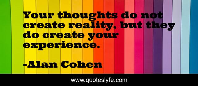 This page presents the quote "Your thoughts do not create reality, but they do create your experience.". Author of this quote is Alan Cohen. This quote is about experiences, thoughts,.