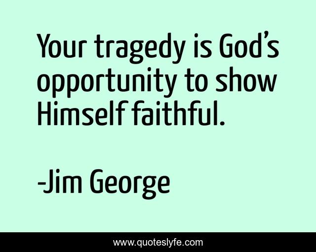 This page presents the quote "Your tragedy is God’s opportunity to show Himself faithful.". Author of this quote is Jim George. This quote is about faith, bible, christian, faithful, show, god, jim-george, love, opportunity,.