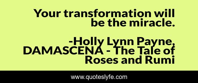 "Holly Lynn Payne, DAMASCENA - The Tale of Roses and Rumi Quotes." Quoteslyfe.com, 2025. Fri. 05 Dec. 2025. <https://www.quoteslyfe.com/quote/Your-transformation-will-be-the-miracle-222883>.