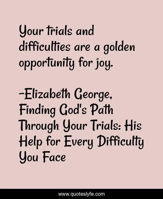 "Elizabeth George, Finding God's Path Through Your Trials: His Help for Every Difficulty You Face Quotes." Quoteslyfe.com, 2025. Fri. 05 Dec. 2025. <https://www.quoteslyfe.com/quote/Your-trials-and-difficulties-are-a-golden-97472>.