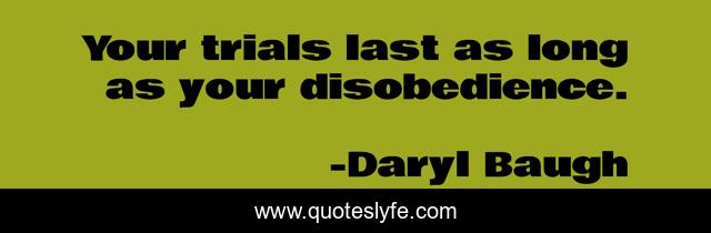 This page presents the quote "Your trials last as long as your disobedience.". Author of this quote is Daryl Baugh. This quote is about bible-study, bible, faith, trials,.