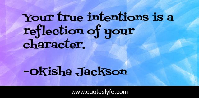This page presents the quote "Your true intentions is a reflection of your character.". Author of this quote is Okisha Jackson. This quote is about spriritual, life-experience,.