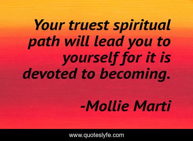 This page presents the quote "Your truest spiritual path will lead you to yourself for it is devoted to becoming.". Author of this quote is Mollie Marti. This quote is about compassion, reflection, life-design, authenticity,.