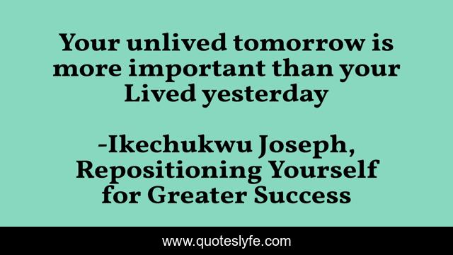 "Ikechukwu Joseph, Repositioning Yourself for Greater Success Quotes." Quoteslyfe.com, 2025. Sun. 07 Dec. 2025. <https://www.quoteslyfe.com/quote/Your-unlived-tomorrow-is-more-important-than-236315>.
