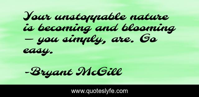 This page presents the quote "Your unstoppable nature is becoming and blooming — you simply, are. Go easy.". Author of this quote is Bryant McGill. This quote is about evolution, growth, state-of-being,.