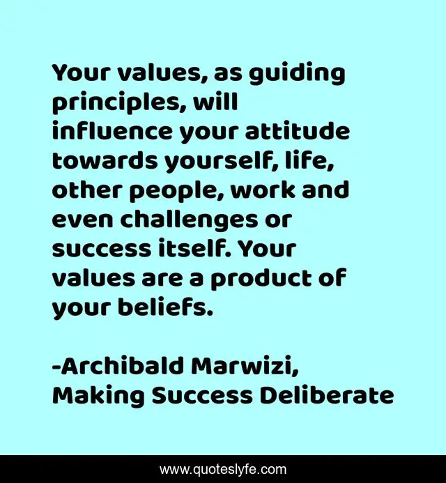 "Archibald Marwizi, Making Success Deliberate Quotes." Quoteslyfe.com, 2025. Fri. 05 Dec. 2025. <https://www.quoteslyfe.com/quote/Your-values-as-guiding-principles-will-influence-109386>.